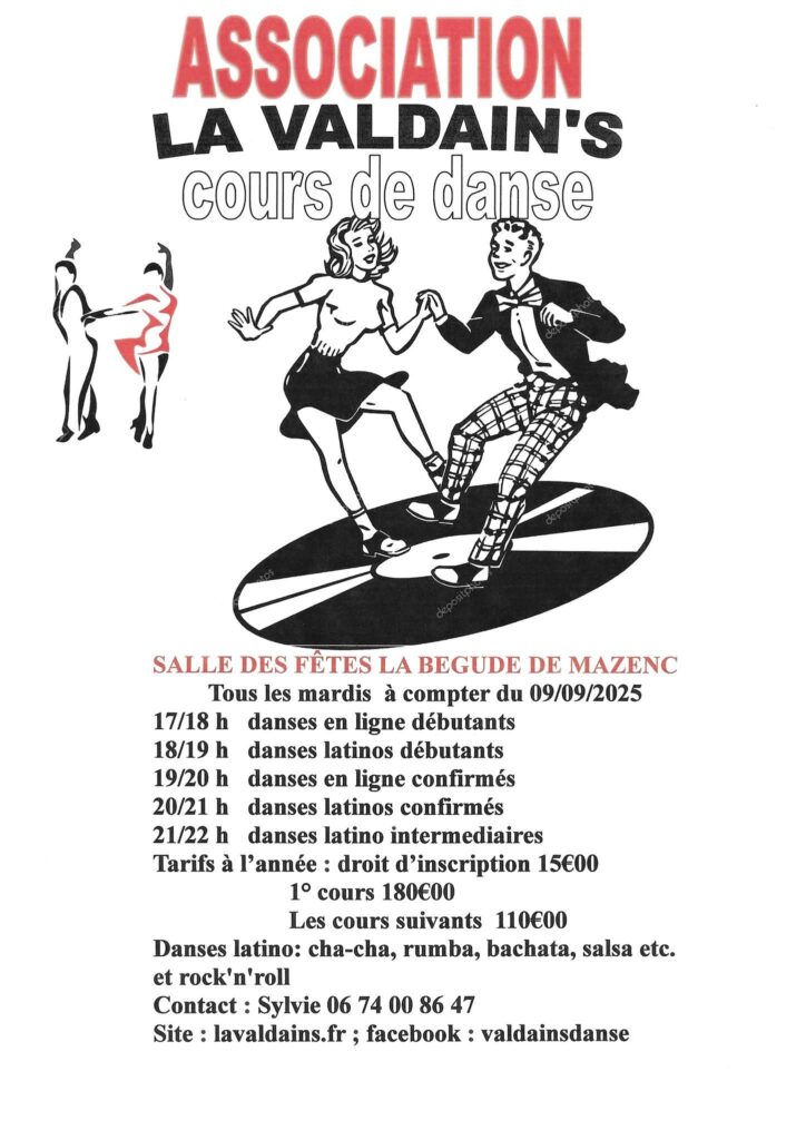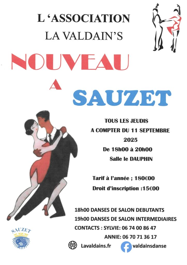Et …. grande nouveauté, les cours de danse de salon sont programmés le jeudi à la salle Le dauphin à Sauzet.